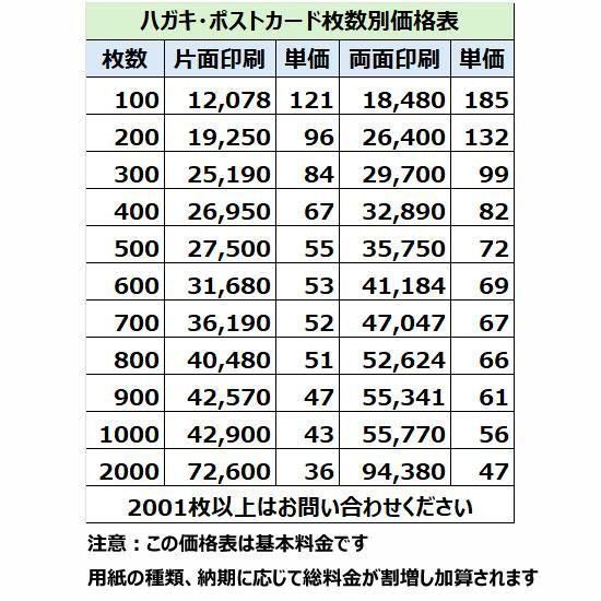 ※ご注文数量が200枚以下の場合はネコポスで、300枚以上の場合は宅急便にて発送いたします。